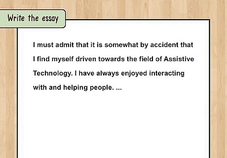 Write the essay. Focus on the prompt. You must respond to the question you’re given, so even if your brainstorming led to some great ideas, make sure the one you choose is appropriate for the question. Chances are good that you will be writing quite of few of these essays. Don’t reuse another old essay unless the prompt is almost exactly the same. Spend the most time on your introduction. If it’s not compelling, admissions officers will not move past it. Try to create a bit of intrigue in this paragraph. Make your readers want to find out what comes next. Be sure that all of your body paragraphs relate back to the intro and fulfil its promises by giving more information about the topic you introduced there. Remember that the conclusion is your last chance to impress. Avoid phrases like “in conclusion” or “in summary.” Your essay is probably fewer than 500 words, so you don’t have time to summarize. Instead, link back to your intro paragraph by reiterating a word or phrase used there. Alternatively, briefly discuss the implications of your topic in a larger context. Distinguish yourself from others. This is the number one piece of advice from college admissions officers, and it may be the hardest for high school seniors to accomplish. The key is to show and not tell. For example, don’t simply write that you are a kind and caring person, show the reader that you are kind and caring by telling a story of a time that you exemplified those traits.