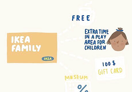 Use the card to get free beverages and other perks at IKEA. One of the main ways to get frequent use out of your card is by visiting the restaurant at your local IKEA store. Show them your card. With it, you can get a free hot coffee or tea during each visit. Some stores offer additional perks as well. If your store has a play area for children, you can use your card to book extra time there. Some stores allow you to earn free food with repeated purchases, too. Each month, if you use your card or check-in at a store kiosk, you become eligible to win a $100 USD IKEA gift card. Some museums offer discounts if you show your card. The Swedish American Institute offers free admission for children. The California Museum and Garden State Discovery Museum have also had buy one, get one free admission days.