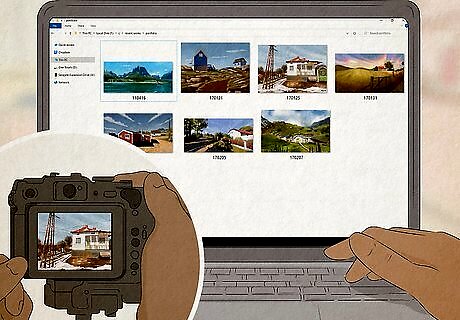 Take clear pictures of your art if the school requires a digital portfolio. Use a good camera to take clear pictures or make scans of your work. Then, upload them to the computer to see if they’re clear enough to view all of the important details. Once you have the images on your computer, depending on the school, you will either attach them to your application through the school’s website or email them to the admissions office. Depending on the school requirements, you may need to put all of the images in a single PDF or upload the .JPG/.PNG files separately with your application.
