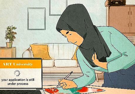 Stay positive as you wait for a response from the school. After you submit your application and complete your interviews, be patient while you hear back from the school. It can take up to 4 months before the school contacts you with their admission decision. If you’re accepted, remember to pay your deposit to reserve your space as soon as possible. Don’t get discouraged if you don’t get accepted into your top schools. Go to the best school possible, or continue working on your art and reapply the following year.