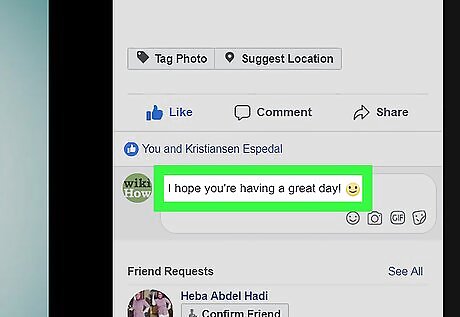 Interact with your friends. Although Facebook's exact algorithm for who sees your content isn't clear, there appears to be a correlation between people with whom you regularly interact and people who frequently see your posts in their News Feeds. You can increase the chances of friends seeing your content by liking and responding to their comments on your content (or on theirs). Liking and commenting on other friends' posts will also help your friends see your posts.