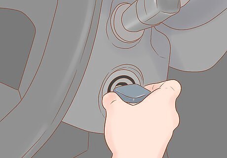 Turn off the vehicle and unlock the doors. Turning the car off will prevent any sudden movements or vibrations while you escape through the exits. Take time with any passengers to unlock any doors so you can quickly evacuate the car. If you do not take time to unlock the doors, you or another passenger may try to force one open and cause sudden movements. Unlocking all of the doors is also important if some of your passengers are children and may not remember to do so themselves.