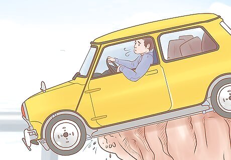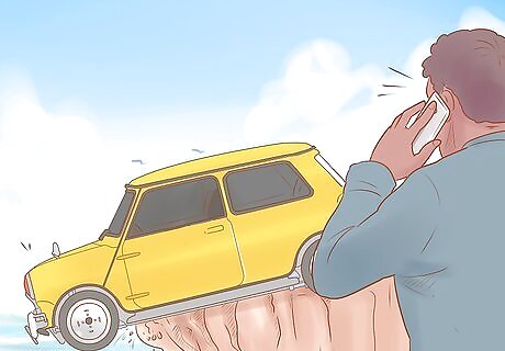 Stop what you're doing if you feel or hear slight movements. If you feel, hear, or see a slight movement, stop what you're doing immediately. Although your instincts might tell you to jump out of the car, this may accidentally accelerate the car and push it off the cliff faster. Staying still during small movements is especially important if there are other passengers in the car. Even if you jump out of the car, they may not react in time to escape the sudden acceleration. If you detect a more pronounced movement or movement that doesn't immediately stop, escape as quickly as possible while alerting the other passengers.