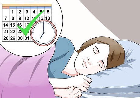 Aim to stick to a sleep schedule. If you get up and go to bed at the same time each day, this will help improve your sleep. Your body has a natural circadian rhythm that responds to a regular sleep/wake cycle. If you fall asleep at, say, 10 each night, and get up at 6, your body will adapt. You will begin feeling sleepy around 10, and wake up feeling alert. Although it can be difficult, try to stick to roughly this same schedule, even on weekends. Sleeping in on a Sunday can throw off your sleep Monday night.