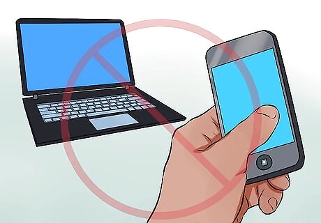 Stay away from electronics. The light from a television, phone, or tablet screen can interfere with sleep. In the half hour before bed, avoid things like texting your friends, going online, playing games, or watching movies or TV (especially things that are exciting or scary). Find other ways to wind down. It's a good idea to remove these items from your bedroom completely. If you typically lie in bed texting your friends in the evening, or watching something on your tablet, you're likely interfering with your own sleep cycle. It can be difficult to resist the temptation, especially after a long day. Try asking your parents to take your electronics before bed. This can help you prioritize sleep.