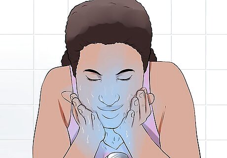 Wash your face. You should always wash your face before bed. This can help prevent acne breakouts by removing dirt, bacteria, and oils that have accumulated during the day. You should use a mild soap meant to treat acne and wash your face with warm water. Do not scrub your face. Gently massage your face in circular motions until you've worked up a lather with the soap. Then, rinse your face off. If you have any acne lotion, you should apply this after washing your face.