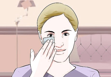 Remove any makeup. Sometimes you may feel so tired you want to skip removing your makeup before bed, but you should never go to sleep without removing it first. Leaving makeup on can clog your pores. Your skin needs to breathe and heal at night, so you should remove your makeup to allow this to happen. Wipe off any foundation, primer, or other products with a facial wipe. Make sure to wipe away any traces of makeup. Even if you're just wearing mascara, you should still remove your makeup. Leaving mascara on can clog hair follicles, and it can also damage your lashes and make them brittle, which can cause them to break. Brittle lashes may also bend and poke you in the eye.