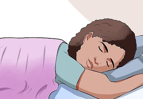 Get comfortable in your bed. Once you feel like you've wound down, get comfortable. You want to make sure you're lying in a comfortable position, as this will help you drift off to sleep. Make sure your room is dark enough. Turn off the lights and pull down the curtains or shades. Make sure you choose the position for your mattress, pillow, and blankets that are most comfortable for you. Don't use your bed for anything other than sleeping. Don't study in bed. This way, your body will know that as soon as you hit the mattress, it's time for sleep.