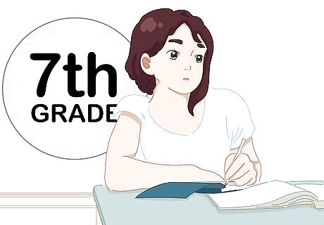 Review what you learned during seventh grade. Brushing up on your academic skills over the summer is a good way to feel ready for eighth grade. For maths, practice solving multi-step word problems, using decimals, fractions, and percentages, and reviewing proportional relationships. For English literacy, practice looking up new words that you come across in a dictionary, and then using them in a sentence. Some teachers give out sample assignments over summer for you to practice on.