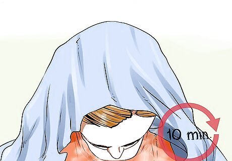 Add one to two drops of essential oil to the hot water. After you have added the oils to the water, then cover your head with a towel and place your face over the steaming pot. Make sure to close your eyes and keep your face at least 12 inches away from the water. The steam will open up your pores and help to prevent breakouts, but if you are too close to the steam then the heat may damage your skin.