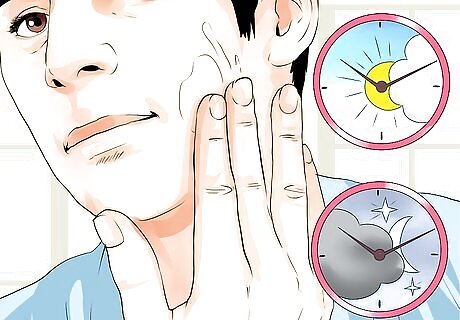 Wash your face at least twice a day. To get rid of hormonal acne, you will need to wash your face twice per day, such as in the morning and the evening. You should also wash your face after any periods of heavy sweating. For example, if you go for a run or if you have been doing yard work, then you will want to wash your face again.