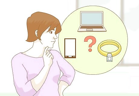 Determine which of your possessions you can pawn. Consider bringing in valuable possessions like electronics, jewelry, antiques, or musical instruments to pawn. Remember that the loan you receive will be a fraction of the market price of the item. This is because the pawn broker has to cover their own expenses and then try to sell the item for its market price if you fail to repay your loan. Never bring in anything you can't bear to lose, especially if you are unsure about your financial future.