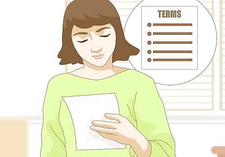 Craft a loan agreement. As a safeguard for both you and the lender, you should draft a loan agreement that spells out the terms of the loan. This "promissory note" is a contract that shows identifying information for you and the lender (names and addresses), important dates like the start date and repayment dates, the total amount loaned, and each individual payment amount. It's best to use a pre-made template so that your contract is more legally-binding and accurate. These template are available online for a small fee from several websites.