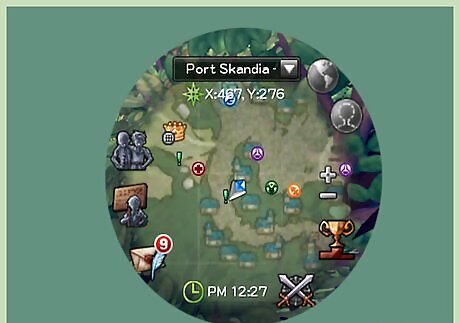 Head on to Navea. Once at level 40, it’s time to head back to Navea. You most likely remember it from the end of the Crescent Hill questline. The easiest route to Navea is by going to a nearby Warp Portal. It’s a pagoda-like structure with a decorated teardrop-shaped blue crystal floating above it. Click the large floating crystal and you’ll see a selection of places to go to. At the very top is Navea; click the city name. Warp Portals can be found on the world map as a blue wing icon in a white circle. If you still have some errands to run in Crescent Hill or fancy the long route, head back to Brevis. Go through the portal to Crescent Hill, then when you’re ready, just head on northwest until you see the giant walls and gate.