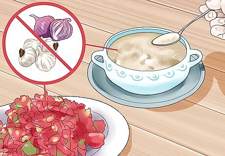 Avoid smelly foods. Limit the amount of onion and garlic you eat. The smell of onion and garlic stays in your mouth for hours. It also is digested into your bloodstream, which means the smell becomes part of the air you exhale when you breathe.