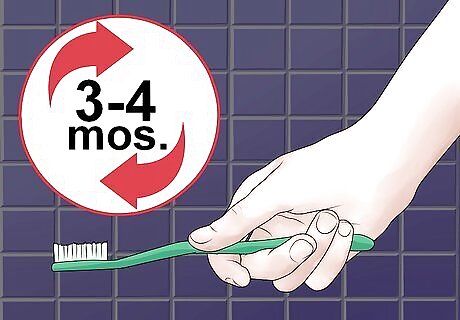 Regularly get a new toothbrush. Check the bristles on your toothbrush to determine how worn they are. Some toothbrushes have a color indicator that tells you when it’s time to replace your toothbrush. Buy a new toothbrush or toothbrush head every 3-4 months. Replace your toothbrush more frequently if you notice your toothbrush is wearing out sooner.