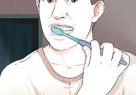 Brush your teeth. Place fluoride toothpaste onto an electric or soft-bristled toothbrush. Hold the brush at an angle and brush using short and gentle strokes. Brush the surfaces of your teeth as well as the part where the teeth meet the gums. Brush twice a day for at least two minutes.