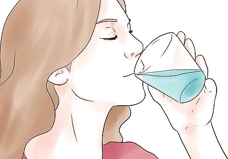Stay hydrated. Migraine can be triggered by dehydration. Once a migraine starts, try to drink some water to see if it helps ease the symptoms. Dehydration can get worse if you are vomiting or have diarrhea, so make sure you are replacing any fluids lost. Stay away from other drinks that might cause your symptoms to get worse. You can try a sports drink because they help you replace electrolytes.