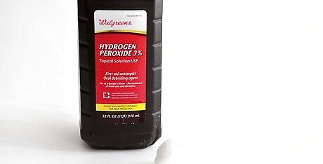 Rinse with peroxide. Measure a few tablespoons of hydrogen peroxide into a cup, pour it into your mouth, and swish for one minute. Spit it out into the sink and rinse your mouth with clean water. As an alternative, dip a cotton ball in peroxide and rub it on your teeth, making sure they get completely coated. Let it sit for about a minute, then rinse your mouth out with water. Do not swallow the peroxide. It's safe to use peroxide on your teeth, but swallowing it could make you sick. This technique should not be used often, as it may degrade your teeth over time. Use it when you need a quick whitening fix, but turn to more sustainable techniques in the long term.