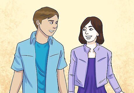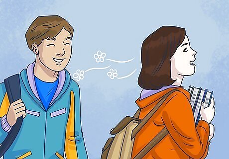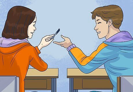 Get him wanting you. Walk with your head high, one foot in front of the other, smile, and walk by him with a nice smelling perfume. Wave at him from time to time, but dont' be needy. Flirt by teasing him a bit, stealing his pencil and playing with it, taking his glasses and trying them on, goof around and just have fun! This person isn't another species, think of this person as a friend, so don't be awkward.