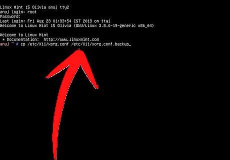 You should now backup your X configuration in case it is corrupted. Type cp /etc/X11/xorg.conf /etc/X11/xorg.conf.backupGet Your Nvidia Graphics Card Working on Linux Step 5Bullet1.jpg