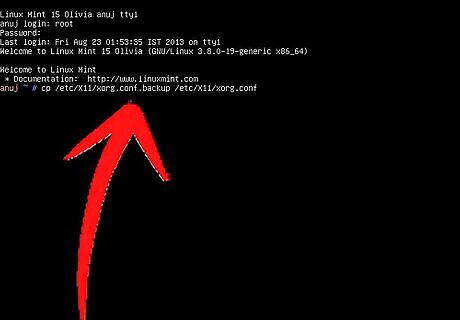 If X fails to load up, press ctrl+alt+F1, log in as root and type cp /etc/X11/xorg.conf.backup /etc/X11/xorg.conf Type /sbin/init 5Get Your Nvidia Graphics Card Working on Linux Step 9Bullet1.jpg Your problem should now be solved, although your NVidia driver will not be configured.Get Your Nvidia Graphics Card Working on Linux Step 9Bullet2.jpg