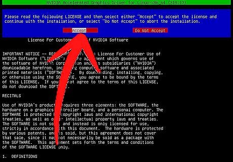 Note that you will now be taken into an installation screen. Follow the steps on the screen. Remember, when it asks you if you want it to configure your XServer to say yes.Get Your Nvidia Graphics Card Working on Linux Step 7Bullet1.jpg Remember, allow it to download/compile from the Internet if needed.Get Your Nvidia Graphics Card Working on Linux Step 7Bullet2.jpg