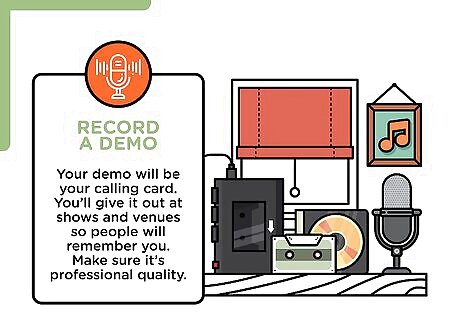 Record a demo. Your demo will be your calling card. You’ll give it out at shows and venues so people will remember you. Make sure it’s professional quality. If your demo isn’t good quality, people will think you’re an amateur. Make a rough recording on your own to make sure everything sounds the way you want it to. You don’t want to waste expensive studio time tinkering with your song. Practice your songs with a metronome and record them to a click track to stay on rhythm. This will allow you to seamlessly add backup instruments to your demo. Keep it short. The people you’ll be giving your demo to are likely very busy. Your demo should be five songs or under. Put your best song first. Hook your listener right away. Make sure your demo has a cover that reflects your personality. EXPERT TIP Timothy Linetsky Timothy Linetsky Music Producer & Instructor Timothy Linetsky is a DJ, producer, YouTuber, and music educator based in San Francisco, California. He has been making music for over 15 years, and is known for his YouTube channel You Suck at Producing, in which he does music production tutorials for over 330,000 YouTube subscribers. In addition to teaching music production, he releases his own music as Underbelly. He has taught at schools such as Beat Lab Academy and Pyramind. He is also an Ableton Certified Trainer, and has worked closely with the company to produce tutorial videos and educational content. His original productions have garnered millions of plays on Spotify, and in 2020, he released his debut album Machine Yearning as Underbelly to critical acclaim. Timothy Linetsky Timothy Linetsky Music Producer & Instructor Make music that's true to your own sound. Timmy Linetsky, also known as DJ Underbelly, tells us: "Unless your goal is to make really commercial stuff, I wouldn't worry about the marketability of your music at first. The beauty of the internet is that there’s now an audience for everything. Marketability often is a creative hinderance more than anything else. It’s not something to worry about until the project is — from a creative standpoint — 100% done."