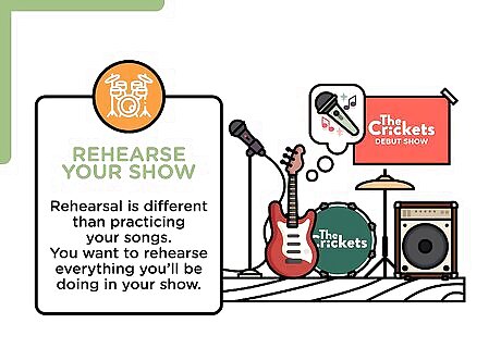 Rehearse your show. Rehearsal is different than practicing your songs. You want to rehearse everything you’ll be doing in your show. Make your performance tight. Practice engaging with the audience.
