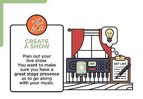 Create a show. Plan out your live show. You want to make sure you have a great stage presence as to go along with your music. Find out what you can do to make your show more engaging. Add personal stories to go along with your songs. Tell jokes. Learn dance moves that will help your audience get into the music. Have a light show to go with your music.