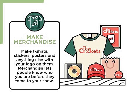 Make merchandise. Make t-shirts, stickers, posters and anything else with your logo on them. When someone wears or uses your merchandise, they’re promoting you. You want as many people to see your image as possible. Merchandise lets people know who you are before they come to your show. They’ll want to see why other people like you.