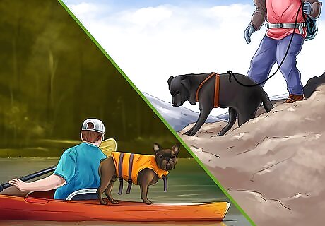 Try a new activity with your dog. If you or your small dog are getting tired of the same walk or run around the neighborhood, explore a new environment. Put your dog on the leash and take it to a new part of town. Let the dog lead you so it can check out anything it's interested in. You could take your small dog on a gentle hike through the forest. Let the dog sniff and examine things along the trail. Take your dog along with you when you do contained activities like canoeing or kayaking.