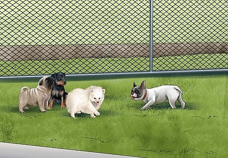 Take your small dog to the dog park. Dog parks are a great way to let your dog off the leash so it can explore and stretch its legs. Before you go to the dog park, ensure that your dog responds to basic commands so you can call it back to you, if needed. Keep an eye on your small dog since there may be larger or more aggressive dogs at the park. Check the dog parks to see if they have a small dog section or offer small dog play times. Be careful letting a small dog play with large dogs since any aggression on their part could be deadly. Either avoid letting your dog play with larger dogs or be careful to talk to owners about their dogs and if they have any aggression problems.