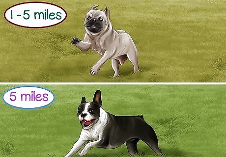 Exercise with your small dog. Make your dog's exercise part of your daily routine and so you both form healthy habits. Just ensure that you tailor your routine to fit your dog's needs. For example, if you're training for a half-marathon, it's fine to jog your dog, but it probably won't be able to keep up with you for an extended period of time. If you have a pug, Boston terrier, or any flat-faced breed, you should limit your runs to under two miles. This is because some flat-faced dogs may struggle to breathe while running. These dogs may struggle even more in hot or humid weather, so always pay close attention to your dog and if it seems winded be prepared to carry it home.