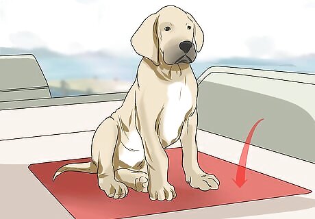 Bring a carpet. Bathroom throw rugs and outdoor carpet will serve multiple purposes for your dog. It will prevent your dog from slipping on the deck. It will also protect your pet’s feet. Dogs absorb heat through the pads on their feet and boat surfaces can get very hot in the sun. Alternatively, you can put shoes on your dog to protect its feet.