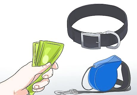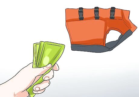 Buy a doggie life vest. Life jackets for dogs can be purchased at most pet stores and boating stores. Bring your dog with you to the store to try a life vest on. Make sure that it fits well before you buy it. If you have trouble figuring out to use the straps to secure the vest on your dog, ask for assistance at the store before venturing out. These will typically cost anywhere from $20 to $80.