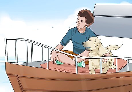 Abide by the law. There are no national regulations pertaining to the way that dogs are handled on board a ship. However, some states might have laws, as do some foreign nations. Research the laws in any of the political units that you will be venturing into on your trip. Pennsylvania, for example, limits the number of dogs that you can have on Fish and Boat Commission lakes to two, but lifts the rule that dogs must be on a leash, once the dog is on board a boat.