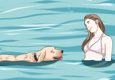 Watch your dog carefully. Keep your dog on short tether so that it can’t venture too far away and never leave it unattended. Tell your dog to stop or sit if it seems like it is about to drink water outside of the boat. Lake, river, and ocean water can be polluted and dangerous for your dog. Keeping sufficient water on board and providing cool spaces will discourage your dog from drinking untreated water.