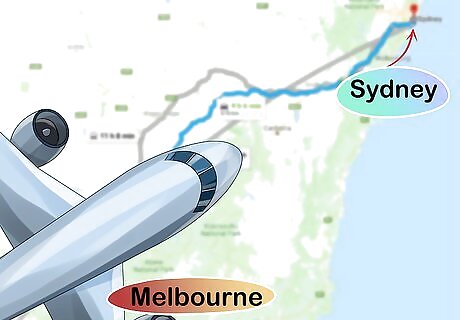 Fly for a quick and relatively cheap option. Flying between Melbourne and Sydney takes about 1.5 hours, making it the fastest option even with airport lines. Plus, if you snag a deal, it can be as cheap or cheaper than traveling by train.