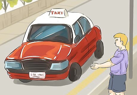Flag down a red taxi. Taxis are plentiful in Hong Kong, especially in urban areas. Look for a red vehicle with a 'taxi' sign on top of their roof. These taxis travel between the different suburbs in Hong Kong. Wave out to a taxi and wait for them to stop. Ask the driver to take you to the top of Victoria Peak. If you're having trouble finding a taxi, go to a hotel or taxi stand where the taxis are plentiful and it is easy for them to stop. Don't worry if you can't speak Cantonese, as most drivers will likely understand where you want to go.