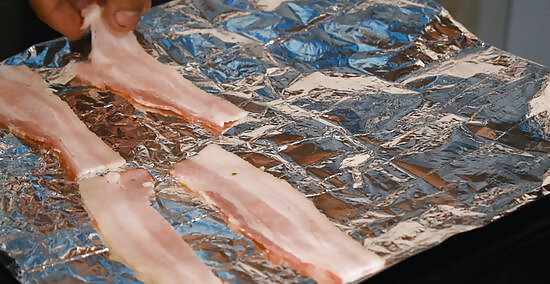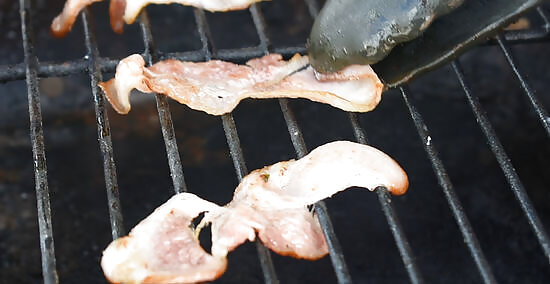 Use a sheet of aluminum foil for safety and ease of cleanup. No matter whether you're using a gas or charcoal grill, aluminum foil is your friend in a pinch. It's easy to improvise a grilling pan from a single large sheet of aluminum foil — simply fold the sheet in half over itself (to give it added thickness), then fold the edges up an inch or so so that they'll hold in grease from the bacon's fat. Lay the bacon strips directly into this "pan" and turn as normal during the cooking process. When the bacon is done, remove it from the pan and into a paper towel-lined plate. Carefully remove and dispose of the foil once the grill has cooled. Note that using an aluminum foil "dish" makes it less necessary to offset your coal pile in a charcoal grill. Since the rendered fat isn't falling directly into the grill unless the aluminum tears, you have the option to cook directly over the coals. Note, though, that this can give faster cooking times.