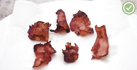 Remove the bacon to a paper towel-lined plate. When the bacon is done, it should have an appearance ranging from red to dark brown (depending on how crispy you like it) and a delicious aroma. Remove the bacon from the grill strip-by-strip and place it onto a plate lined with several layers of paper towels. Allow the paper towels to absorb some of the excess fat, then serve the bacon as desired! As with turning during cooking, bacon proves the exception to other meats in terms of allowing it to rest before serving. While many other cuts of meat are noticeably moister and more flavorful after resting for 10-15 minutes following cooking, bacon is ready to eat as soon as it's cool enough not to burn your mouth!