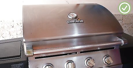 Cook the bacon with the lid closed. Add your roasting pan full of bacon to the grill and shut the lid. This keeps the heat from the burners inside the grill, cooking the bacon from both above and below in a fashion similar to baking it. To keep your cooking time low, keep the lid shut during cooking except for when you check on the bacon's progress. Don't forget to turn doing the cooking process — though it's not as essential here because the heat is coming from all sides, rather than just from below, it's still necessary for even cooking. You'll want to turn at least as it cooks — more is fine, but may lengthen the cooking time by allowing the grill's heat to escape. Keep a close eye on your bacon as it cooks — if it's cooking too quickly, flip it immediately and reduce the heat.