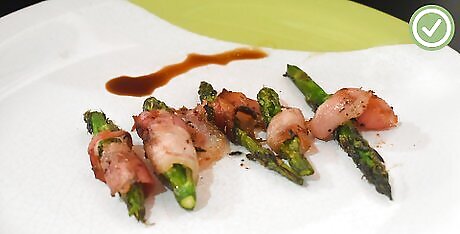 Consider other barbecue recipes that use bacon. Grilling bacon on its own is fine and dandy, but why stop there? Below are just a few basic barbecue dishes that use bacon or can easily be made to accommodate it — feel free to add bacon to any other dishes you know as well: Bacon-wrapped asparagus stalks Bacon-wrapped chicken Bacon cheeseburgers Barbecue beans Chili Roasts (pork, beef, venison, turkey, etc.)