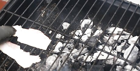 Light the grill. As with any sort of charcoal grilling, before you get started grilling your bacon, you'll need to get your charcoal to just the right heat for grilling. Before lighting them, however, make sure to offset the coals by piling them in one side of the grill, leaving the other coal-free. This will create a hot side of the grill and a cool side when the coals are lit. When you're ready, light the grill. Note that if you aren't using match-light charcoal, this may require lighter fluid. After lighting, leave the lid off and wait for the coals to burn to perfection. Coals are typically ready for grilling after they develop a grey, ashy exterior and emit a warm orange glow. This can take 20 minutes or longer.