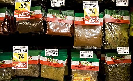 Purchase non-perishable items in bulk, if the price is better per unit. Purchase dried herbs and spices in the "ethnic" section (in little cellophane bags) of the grocery store. They are much cheaper than the ones that come in little, glass jars. (Save and refill those little jars, if you like them.) Sugar, flour and rice are often cheaper in bulk. Watch out though. Some institutional-sized canned foods are more expensive than their smaller counterparts. Check the prices per unit.