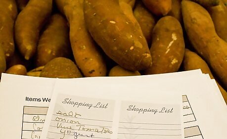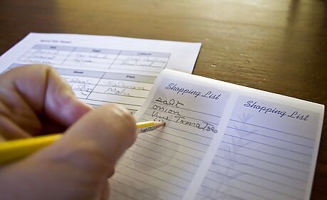 Research cookbooks or the Internet for menu ideas. Write up a weekly menu. Try to shop once a week, except perhaps for produce.