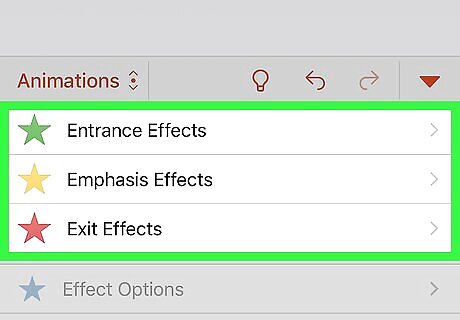 Tap an animation effect. You can select one animation from Entrance Effects, Emphasis Effects, or Exit Effects.