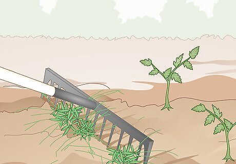 Weed around your pepper plants regularly. You may want to place mulch around them to avoid weeds and keep moisture in the soil.