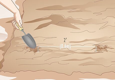 Dig small holes approximately 2 feet (0.6m) apart in your garden to plant your seedlings. The hole will need to be wider than it is deep for the roots to spread out. If you are planting in a container, you should remove some soil before placing your pepper plant inside, so you don't compact the soil by pushing it down.